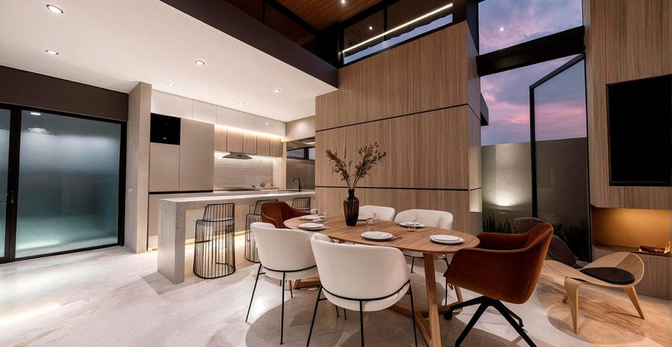 Villa Solmaré está pensada para un estilo de vida moderno y relajado, con interiores cálidos, iluminación indirecta y una paleta de tonos neutros que elevan la sensación de amplitud y sofisticación. Los renders muestran espacios ideales para disfrutar en familia o recibir invitados, manteniendo privacidad en el área de recámaras.